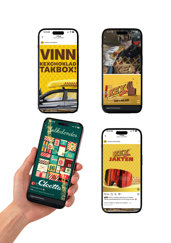 Ett urval av olika inlägg till Social media inlägg för Kexchoklad och ByCloetta